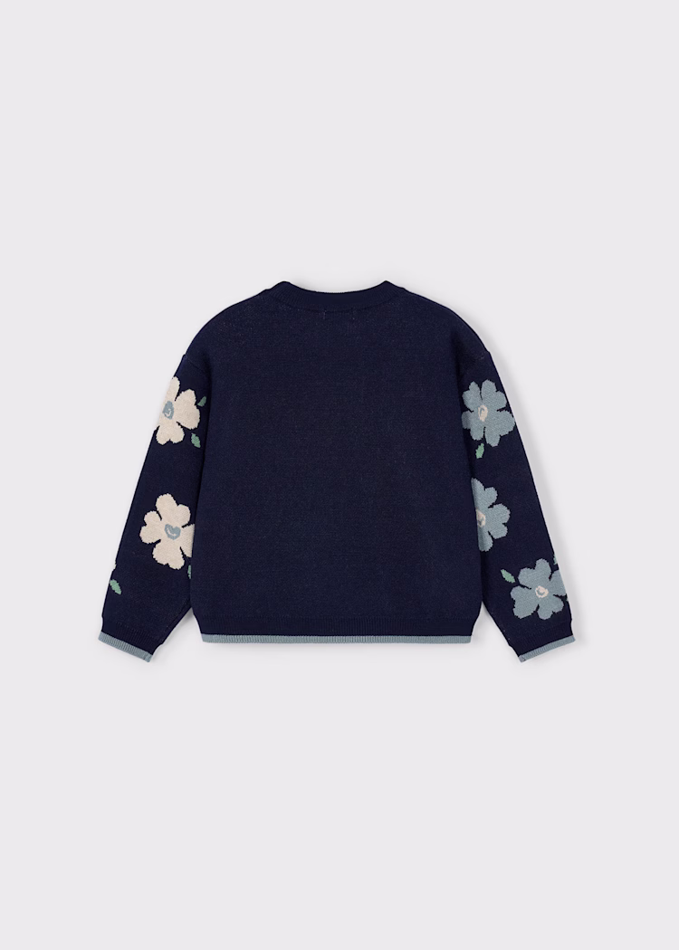 Contains recycled polyester. Long sleeved Sweater for girls. Round neckline. Jacquard stitch designs.