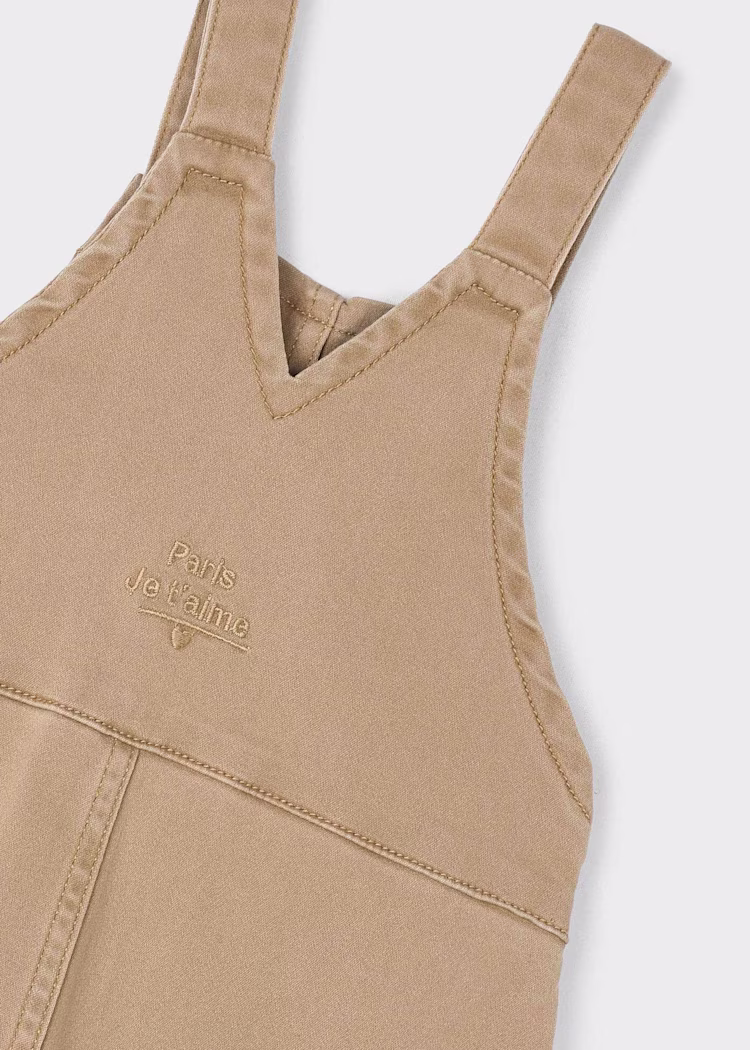 Original dungarees for girls. Buttons to fasten. Comfortable and resistant twill fabric. Functional front pockets.